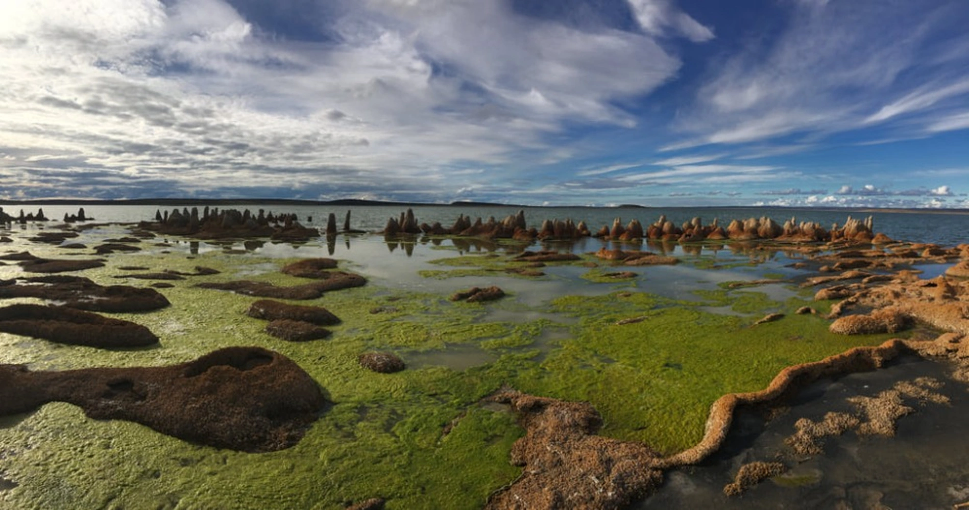 This full day in Tierra del Fuego begins and ends in Punta Arenas. Once we arrive at Bahía Chilota we begin our excursion which will take us on a journey back in time (3.8 billion years ago), to the most primitive beginnings of life on Earth. Laguna de los Cisnes – Natural monument which harbors bacterial life that creates exotic structures known as Stromatolites. Then we will visit the Hain viewpoint at capital of the great island of Tierra del Fuego where it is possible to observe the city and its bay from above. Two sculptures representing an ancient Selknam-Hain ritual are also on display at this viewpoint. From Porvenir we continue our journey along side the coast of Tierra del Fuego (Bahía Inutil). During the entire excursion it is possible to enjoy the wild life and especially the icon of this great island – Guanaco. We will reach estancia Onaisín, an old estancia of pioneers where we will visit the British cemetery to then continue by car for just a couple of kilometres more up to the King Penguin Natural Reserve where we will spend little more than an hour observing and admiring the beauty of this sub Antarctic bird. After this wonderful moment, we return to the city of Porvenir to take a ferry back to the city of Punta Arenas and from Tres Puentes terminal (ferry terminal at Pta. Arenas) by vehicle to the respective places of stay of our tourists.