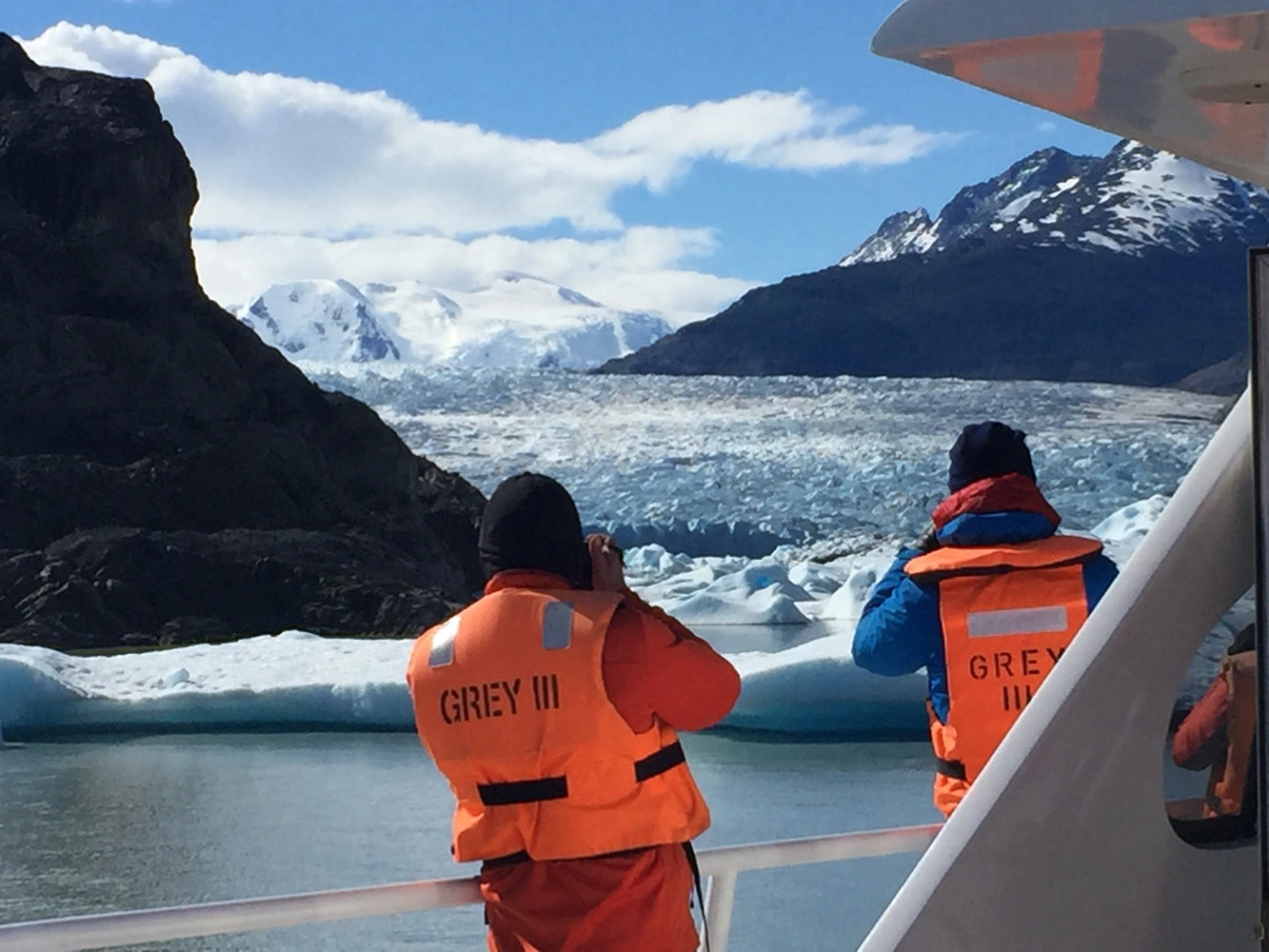 You will navigate in a comfortable and modern boat to Grey Glacier, where you will have spectacular views of radiant, blue ice, floating icebergs in turquoise-grey water, feel the Patagonian wind on your face, and share a unique and unforgettable experience with friends and family. On your way to visit the glacier, you will also enjoy views of Paine Grande Mountain, Paine Massif, forests that border the lake, mountains made of igneous rock, and snowy peaks that reach the clouds. If you are lucky, you will see and hear pieces of glacier ice detach and fall into the water.